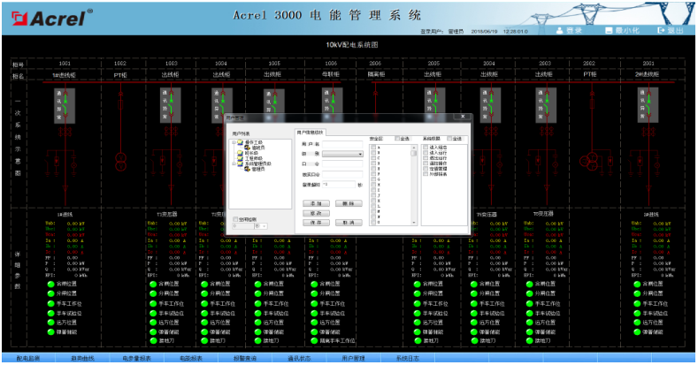 系統(tǒng)為保障系統(tǒng)安全穩(wěn)定運行,設(shè)置了用戶權(quán)限管理功能。通過用戶權(quán)限管理能夠防止未經(jīng)授權(quán)的操作(如配電回路名稱修改等)??梢远x不同級別用戶的登錄名、密碼及操作權(quán)限,為系統(tǒng)運行、維護、管理提供可靠的安全保障。